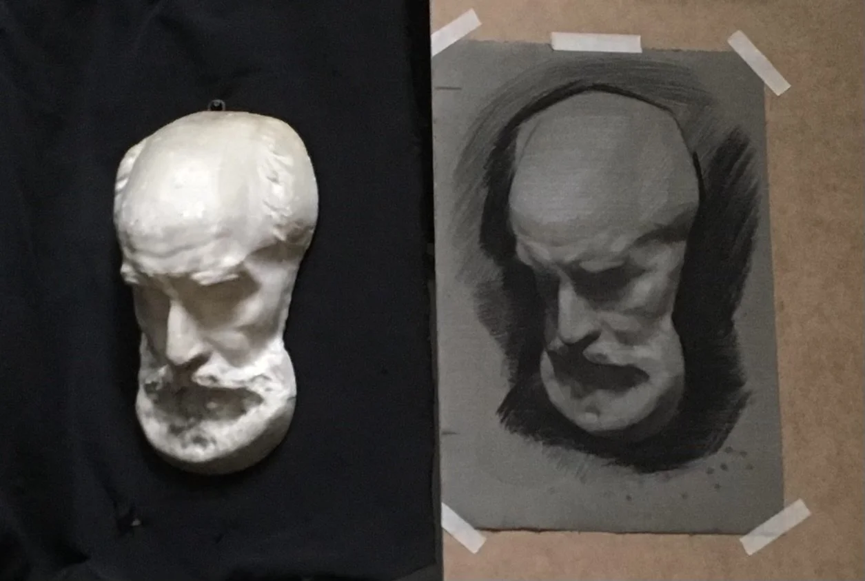 Vid dessa övningar kommer ännu mer betoning läggas vid hur du stämmer valörerna och förmedlar form, ljus och atmosfär samt visuell hierarki genom intressefokus. Vi kommer börja med att teckna efter enklare anletsdrag för att sedan gå vidare med olika ansiktsmasker, och slutligen fristående skulpturer. Det sista projektet kommer att tecknas på tonat papper, vilket gör det möjligt att utöver kol också göra förhöjningar med vit krita. Detta fördjupar förståelsen för valörer och är en teknik som mer efterhärmar måleri.